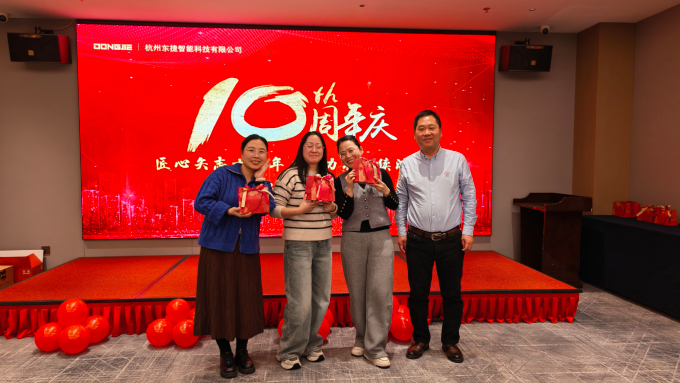 东捷迎来十周年庆典。活动当日,温馨氛围扑面而来,暖场视频里的初创影像、项目攻坚瞬间与团建欢歌,定格了十年风雨兼程的足迹,让在场员工与家属倍感动容。