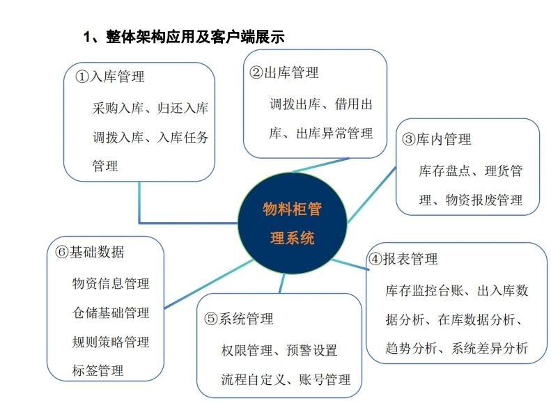 当代企业、工厂日常运作中,会有许多公共物资的流转使用,例如仪器、工具、模具、安全帽、凭证、文档等一系列物资。在传统管理方式情况下,多种弊端显而易见,例如管理人力支出大,物资存放混乱不易查找,物资去向不明,使用记录无迹可寻等。因而进行智能化管理是解决这一系列问题的有效手段。物资借还智能管理柜应用多种技术,建设一套智能化、信息化的公用物资管理系统。通过系统智能控制物资的领取与归还,实现对物资存放位置安全管控,改变传统的机械锁安全控制或无安全控制。